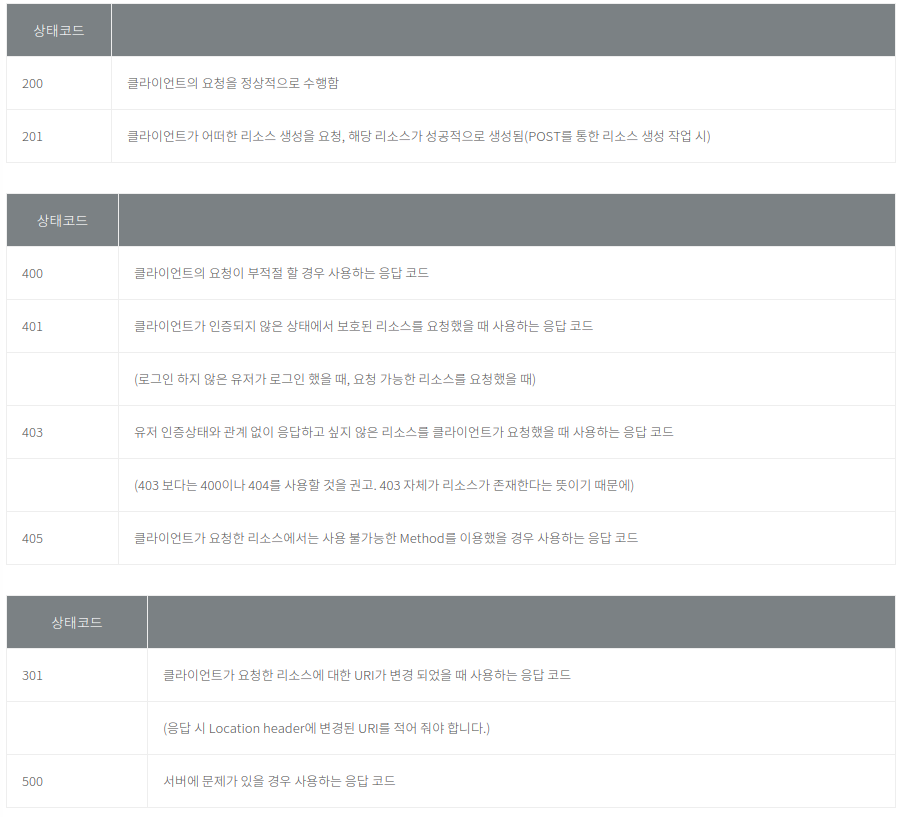 이런 식으로 URI는 자원을 명시하고, HTTP 메서드는 해당 자원에 대한 특정 동작을 정의한다.