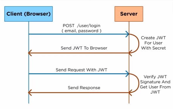 - 클라이언트는 로컬 혹은 브라우저에 저장해두었던 JWT를 이용하여 요청을 보냅니다.