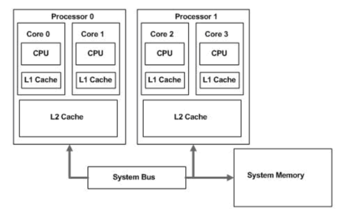 ◈ 코어는 각종 연산을 하는 프로세서의 핵심 요소로 프로세서의 내부에는 코어를 제외하고 컨트롤러, 캐시 메모리 등이 있습니다. 1개의 코어를 싱글코어, 2개인 코어를 듀얼코어라고 하며, 코어 수가 많을수록 병렬 처리 효율이 증가합니다.