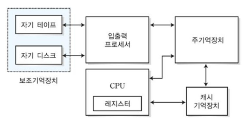 | 메모리(주기억장치) | CPU 외부 | 보통 | 보통 | 휘발성 |