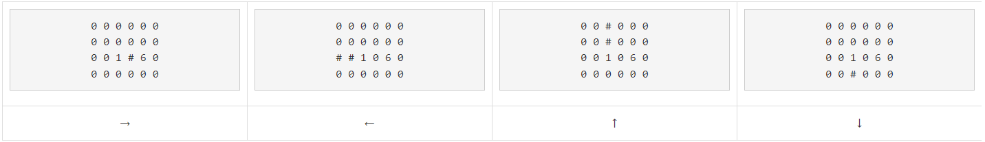 지도에서 0은 빈 칸, 6은 벽, 1~5는 CCTV의 번호이다. 위의 예시에서 1번의 방향에 따라 감시할 수 있는 영역을 '#'로 나타내면 아래와 같다.